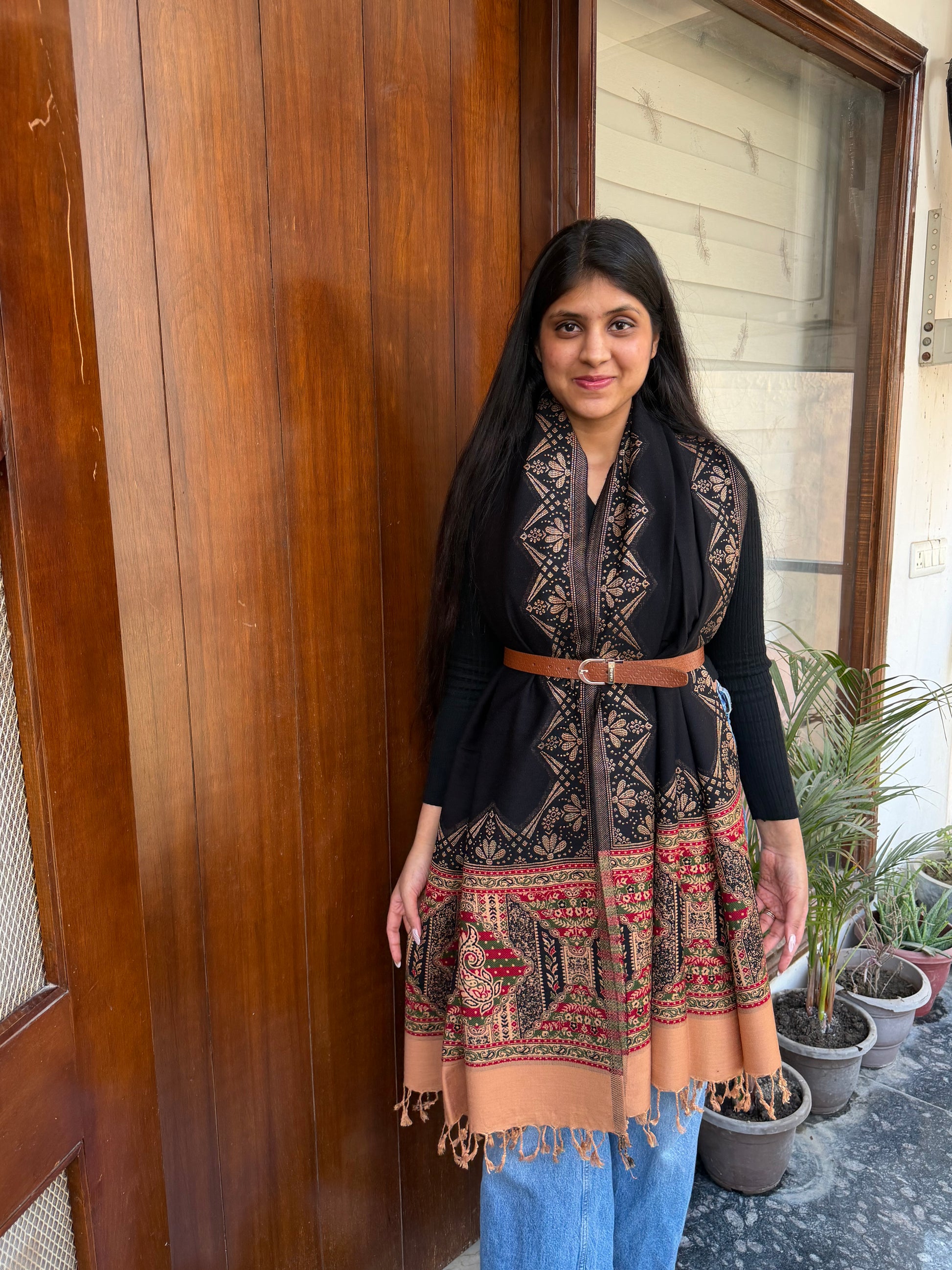 BLACK ETHNIC PUREWOOL DESIGNER SHAWL