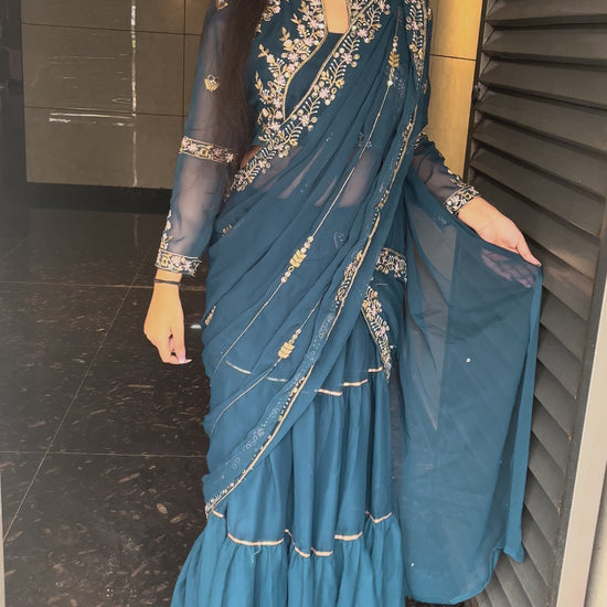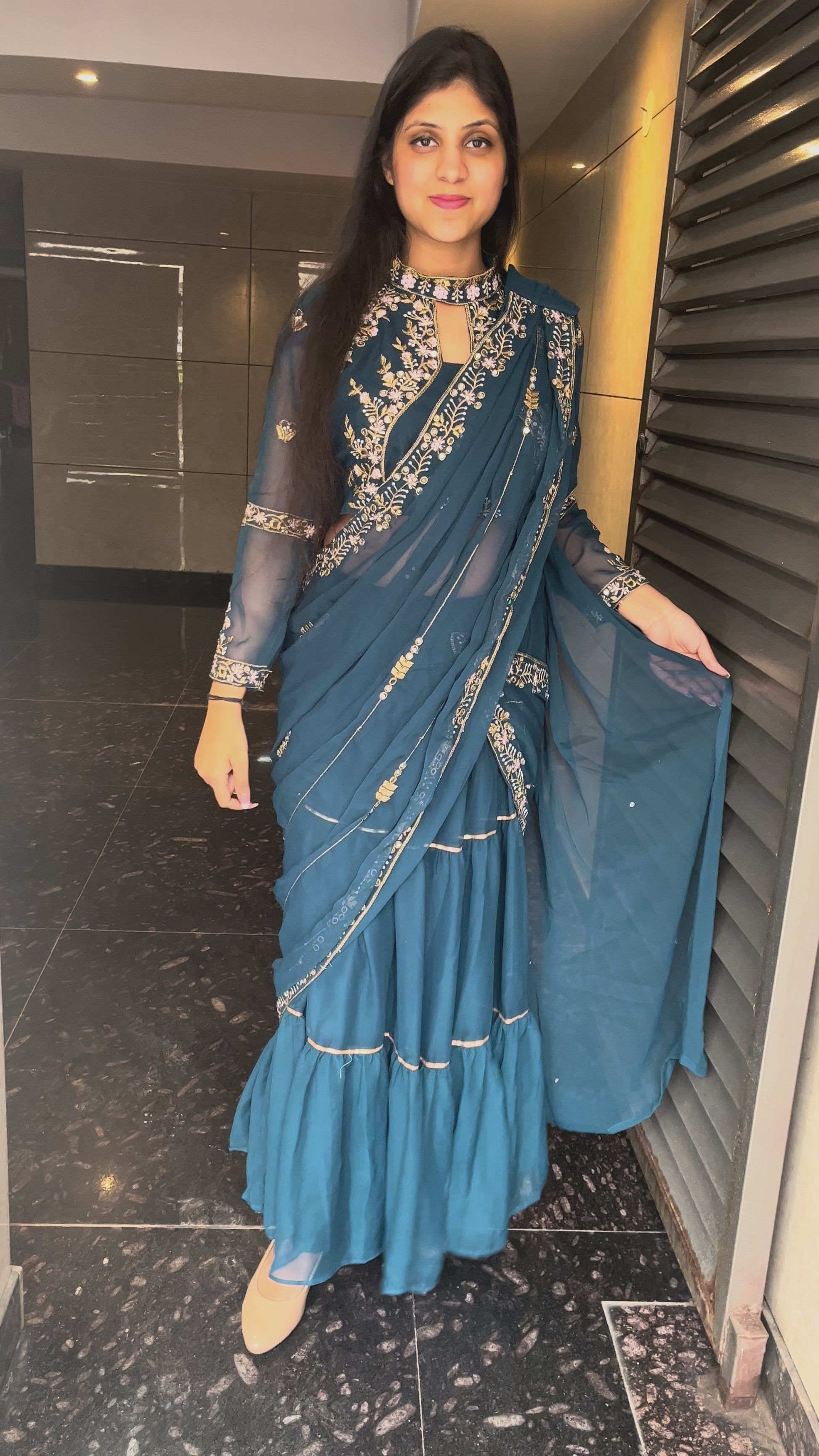 This indo western saree is perfect if you have less time to get ready and super easy to wear
