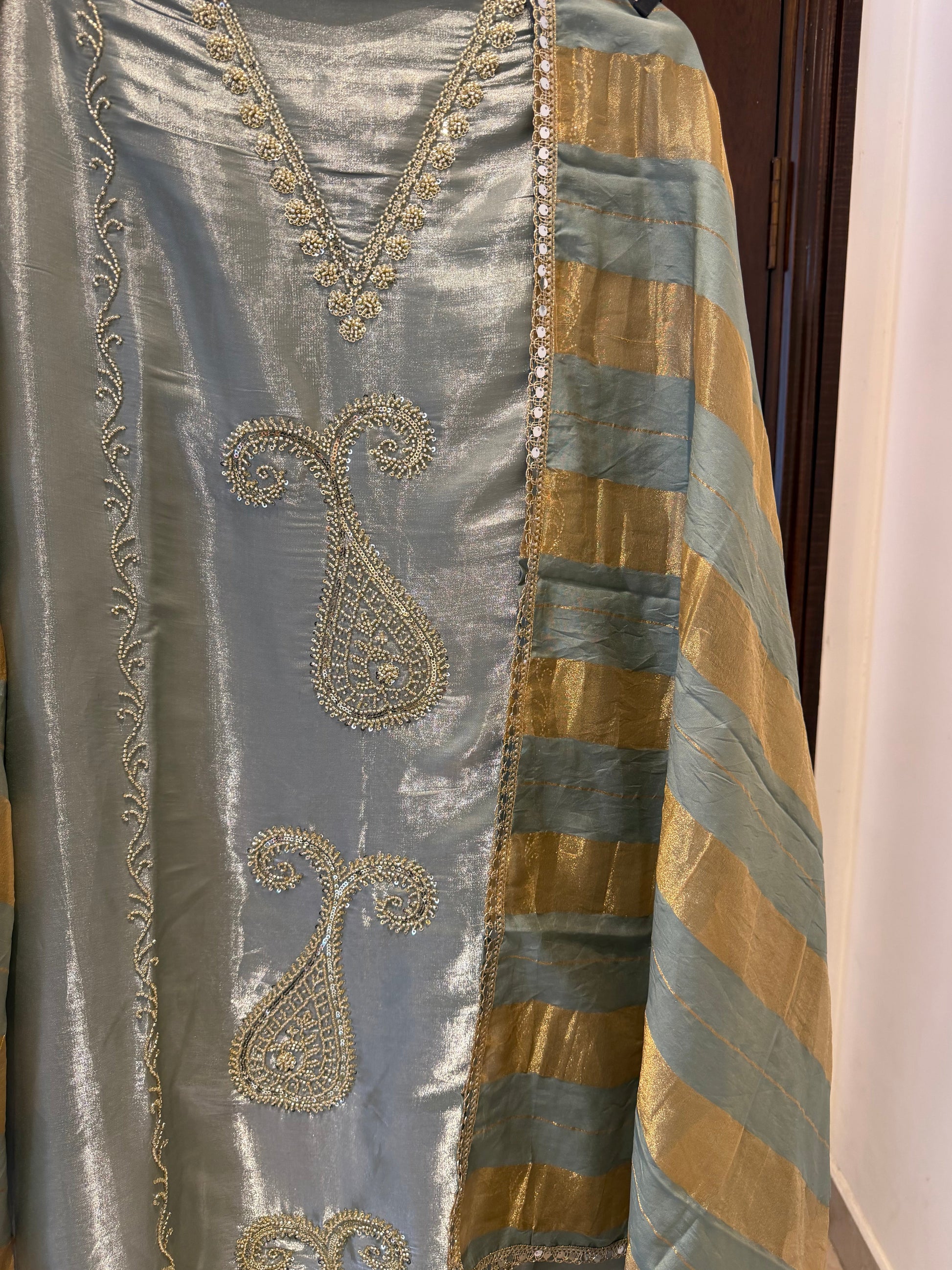 `Maisha’ Glass silk designer 3 piece suit set with handwork