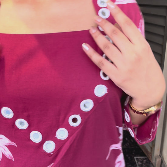 Brighten up your wardrobe with this Mul cotton Red co-ord set — a perfect blend of traditional craftsmanship and modern style. Adorned with intricate embroidery and authentic mirror work detailing, this red co-ord offers a festive-ready look ideal for special occasions, boho style lovers, or just making a statement wherever you go.